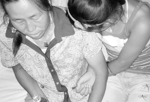 ●女童小月(化名)双手紧紧抓住母亲和姐姐的胳膊,脚步匆忙地闪进记者的房间。随着“咔嗒”的关门声,她惊恐地抬起头,死盯着门闩看了三五秒钟,直到母亲伏在耳边说“门已经上锁了”,才肯坐在床沿,将身体埋在母亲怀里。