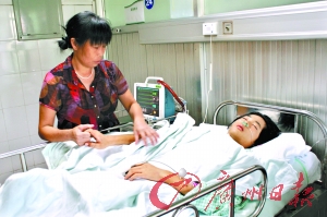 记者昨日在龙岗区人民医院见到镇涛。据主治徐医生介绍,镇涛刚被送来时已经休克,其颈部、胸部、背部等有3处刀伤,其中一刀是从其颈部砍下,以致锁骨、气管和颈部静脉断裂。“从创口来看出手很重,如果不是及时止血,肯定救不回来了。” 徐医生说,目前伤者仍未脱离生命危险。