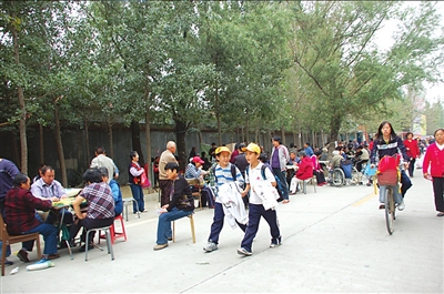 小区里居民自组的牌局、棋局并不少见。然而在天通苑,一些居民却把麻将桌支到了学校附近,形成了一个“露天棋牌室”,这可着实让学生家长们有些担心。