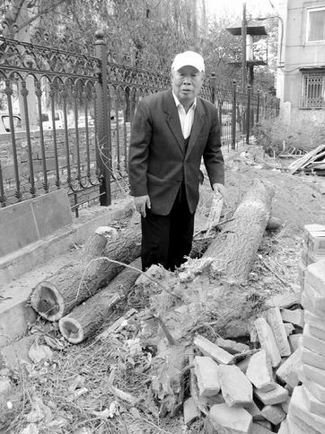 现场:被伐大树幼儿园内被“肢解”
