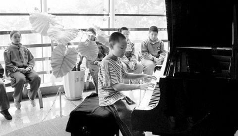 11月4日,下课铃声响起,沈阳市实验学校小学部教学楼里的一架三角钢琴前,立即围了一圈学生。瞬间,音乐在走廊里流淌,大家依次序弹着曲子,陶醉其间,那种自信俨然是个小演员。