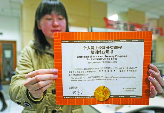 小王是杭州某高校大四学生,他刚刚拿到一张“网商职业能力培训证书”。让人费解的是,得到这张证书,小王一不用花钱,二不用上课,只是报了个名,白拿证书之外还倒赚了100元。