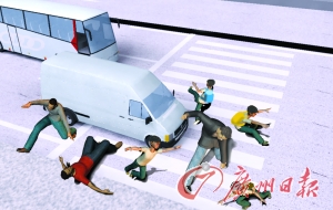 小姜是龙口西小学4年级的学生,学校下午要开家长会,中午就让学生放假,外婆去接他回家吃饭。学生们等着过马路,绿灯一亮,他们便过马路。这时一辆白色依维柯突然直冲过来,“撞人啦!快逃!”有人喊叫起来,小姜躲闪不及,被车碰到膝盖,车子从小姜外婆身边擦过,她回头一看,小姜已倒在地上。10岁的小莫听到后面有人喊,还没有反应过来,车子就冲了过来,他本能地把刚伸出的右脚往后缩,但还是被车撞伤。