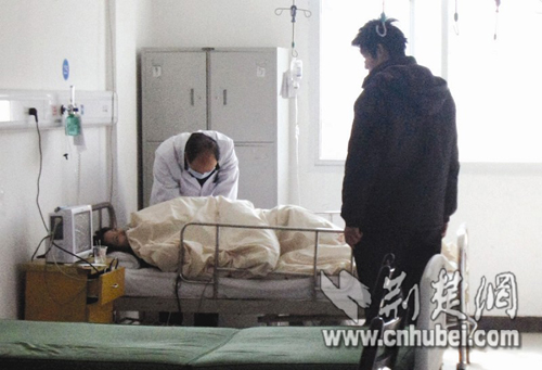 昨日上午11时许,记者在汉阳医院见到,被摔伤的李同学躺在病床上,医生将她推至彩超室做检查,闻讯赶来的班干部陪护在李同学旁边。据了解,李同学来自湖北宜昌,是一所师范院校大三学生,2月26日才开学,因今年开学后课程较少,所以尝试找个工作。