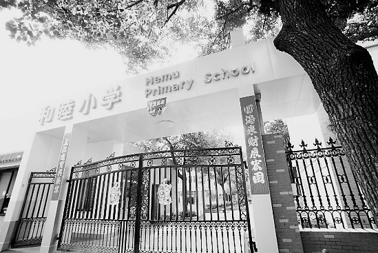 昨天下午,记者来到和睦小学大门口,果然大门两边还贴着那副春联,红底金字,繁体书写。