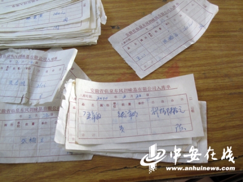 李校长还给记者出示了今年收取260元费用的收据,收据上居然印着“安徽省临泉东风调味品有限公司入库单”的字样,上面写着学生的姓名、班级和所交的260元费用,每一张右下角都是用相同笔迹签了一个“周”字,据李校长介绍签“周”字的人是陈子玉的儿媳妇,她负责来学校收钱。