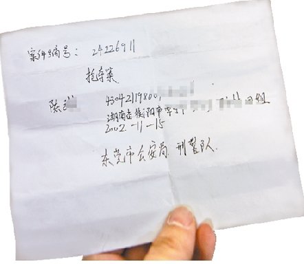 半个月前,陈琳正在山东出差时,接到了户口所在地的广州新塘派出所的电话,对方确认他的身份后,便问他“是不是曾在东莞犯过抢夺罪”。不知为何与抢夺犯罪扯上了关系,陈琳赶紧在上周四赶到广州新塘派出所,在警方的联网资料上,发现了自己在东莞留下的“案底”。