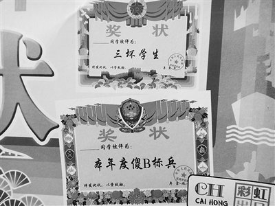 孙女士称,前几天从上小学二年级的儿子的书包里,看到几张奖状,上面写着“本年度傻B标兵”、“优秀放屁专家”称号。儿子说,这是同学们给他的。