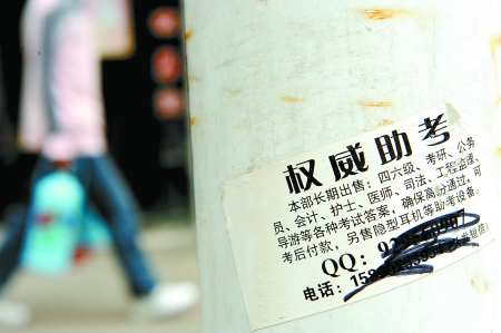 “花几百元作弊,大哥你OUT(落伍)了!”商报记者以参加司法考试为名,寻到郑州某高校大四学生小杰(化名)“取经”,希望他能够给一些作弊经验。
