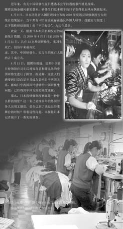 4月9日,日本法务省入国管理局公布了2008年度违反研修制度行为的统计结果。结果显示,2008年度日本共有452家企业存在违反外国人研修、技能实习制度(以下简称研修制度)的“不当行为”,为历年最多。另据该统计,“不当行为”高达549件,其中“规定时间外工作”有169件,比去年增加了 1.8倍。