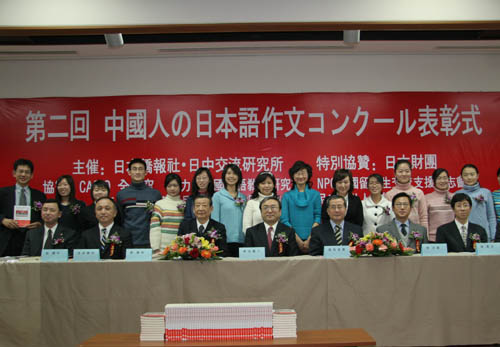 中新网12月9日电 由日本侨报社·日中交流研究所主办的第二届中国人日语作文比赛颁奖大会今天在北京外国语大学隆重举行,64名来自全国24省市的大学生获奖,其中吉林大学四年级学生付晓璇获特等奖——笹川奖,集美大学陈楠、北京师范大学雷蕾、洛阳外国语学院石金花获一等奖,江西财经大学陈茜等10名同学获得二等奖,另有50名同学获三等奖。特等奖获奖者将应邀于明年2月左右赴日交流。
