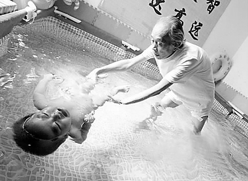在随后的几分钟之内,站在池中的王老先生不时地翻转小星娃的身体,然而每次小星娃都能自动转成脸向上的姿势,保护自己不会溺水。即使王老先生出其不意地把她摁入水下,或是抱起后丢入水中,她都能安然无恙。