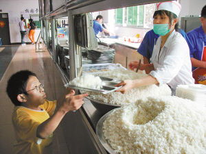 半小时后,李浩出现在食堂,花五毛钱买了两个馒头。由于食堂窗口差不多与他身高一般高,李浩要踮着脚,然后举着饭卡才能顺利在读卡机上划卡。“馒头很软很好吃!”坐在食堂细嚼慢咽后,他便赶到预定位置集合,准备参加开学典礼。