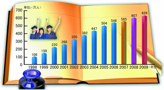 这是一个惊人的速度。此后,全国普通本专科招生数从1999年的100多万迅速飙升到2009年的629万人,远超过当初汤敏3年扩一倍的建议。