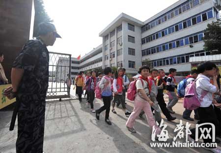 核心提示:5月4日,“五一”小长假开假的第一个工作日,我省各级各类学校的校门口,多了一个岗位———校园保安。他们身穿保安服,警棍、辣椒水、强光手电筒“三大件”齐上阵,使校门口平添一份威慑力。校园保安上岗三日以来,校园保安工作情况如何?学校、家长、学生等各方反应如何?昨日记者进行了采访。