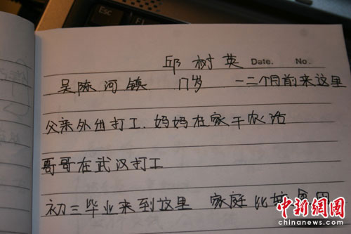 受访对象邱树英的字迹 马学玲摄