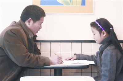 图为宋振华在家指导女儿学习。记者 蔡晓智 摄