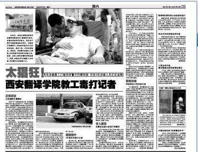 此前,本报曾刊登过的一些报道,来源于西安翻译学院就业信息网。听到彭世军来学校采访的消息,负责该网站的该校信息化办公室教工刘斌,大为恼怒,产生了教训彭世军的念头。随后,刘斌纠集张辉、瞿顺民和王岩(三人均在逃)驾车,沿路快速追赶彭世军。在当地环山路十字,刘斌等人追上彭世军。几人上前强行拦下彭世军乘坐的出租车,并对彭世军拳打脚踢。彭世军奋力反抗,挣脱几人扭打后,跑离现场。