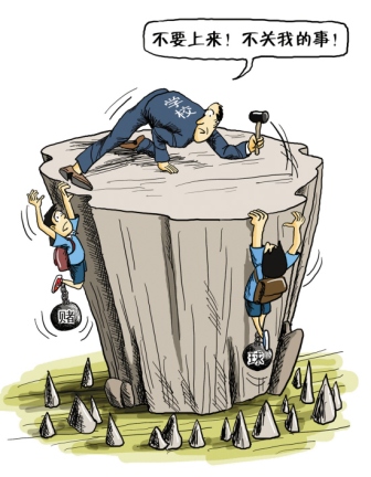 对于中学生参与赌球的事件,昨日,教育局在通报会议上分析表示:一是社会不良势力的渗透。一些不法分子将目光瞄准校园,先是物色一些无心向学的学生,充当他们的帮手,然后以此为据点,利用学生对“NBA”的热爱,将黑手伸向校园,一步步将学生拉进赌球行列,进而达到掠取不义之财的目的。二是家庭监管不到位。学生参赌的时段主要集中在假期,家长对孩子假期的生活监管不到位;对学校要求学生不能带手机到校也持质疑态度;一些家长发现学生参与赌球,包括欠下赌债,家长为息事宁人,往往出钱解决,并未及时向学校和有关部门反映情况。三是学校思想教育和学生管理不够深入细致。由于学校的规模较大、学生众多,学校在教育工作中,对相对落后的学生关注度不够,造成未能及时纠正学生中存在的不良思想和行为。