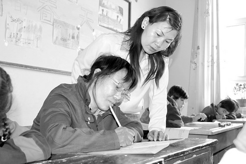 随后的一段时间,董晓菊天天来找曹江涛,要求上学。言之切切,令人感动。9月中旬,学校经过认真研究,同意了董晓菊的请求,安排她进入二年级学习。