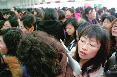 在招聘现场,一家公司的招聘启事要求“身高在1.68米至1.72米之间,体重在 45至55公斤”,很多前来应聘的女大学生无奈地离开。很多求职女生认为,针对女生的工作依旧以会计、行政类居多,和自己专业对口的工作没有或者很少,与普通招聘会无异。一位安全工程专业的女研究生说,该专业女研究生甚至不如英语四级没过的男本科生好找工作。