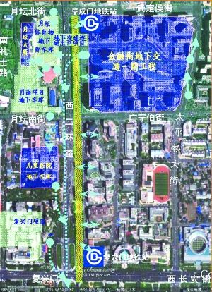 两处地下停车场,未来还将与周边1.5万辆的停车场实现互联互通,并和全市环二环地下隧道相连,成为北京市地下交通网的一部分。由此,预计可分流二环过境车辆约60%,减少金融街区域内地面交通流量约50%。