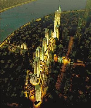 据了解,重庆金融街建设目标定位于打造成“中国西部华尔街”,并形成服务大企业为导向的产业金融平台和以拓展大金融为特色的总部经济平台,主要由7栋180米至350米的高层建筑组成标志建筑群,依托较场口正在修建的西部最高“民生之冠”——428米的鼎好·世纪星城,并以其为顶点,根据各个地块不同的容积率和建筑容量,7栋塔楼被设计成各不相同的体量和造型,勾勒出渝中半岛时尚又充满活力的城市天际线。