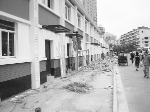 人行道上盖起一排房屋,行人只能走到马路上,汽车、助动车不时擦身而过,险象环生。昨天,读者殷先生致电本报,反映南车站路西侧人行道上突然“长出”一排房屋。