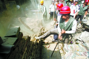 上午10时许,帮拆违法建设的活动正式开始。李广民说,就是这67处今天计划拆除的违法建设,也有居民在昨天开始进行自拆了,加上今天早晨进行自拆的,占了总数的70%左右,对于那些拒不自拆或是无力自拆的居民,东铁营街道请了专业拆除公司,帮助他们拆除。