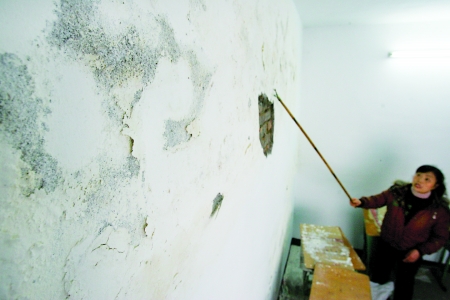 綦江实验中学的李详朝最近很郁闷,自己花了15万元买的128.5平方米教师集资房才住进3个月,就发现5间房的墙壁都大面积渗水。无奈的她只好带着家人外出租房住。