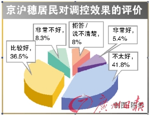 对于中央及各地政府的救市效果,居民褒贬不一,其中,认为有积极效果的受访者超过了四成(5.4%认为非常好,36.5%认为比较好)。