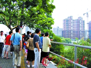 一位在购房者临时接待点坐了两天、不愿透露姓名的业主告诉记者,该楼盘是在2008年11月开盘的,第一期的起价是每平方米1.2万元,到今年4月下旬,第二期开盘的时候,起价已经蹿升至每平方米1.3万元,今年5月下旬,第三期开盘,每平方米的起价又涨了500元。
