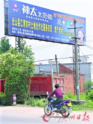 光山县是位于河南省南部一个典型的农业县。江湾村的村委会有很大的院子;旁边是整齐的楼房,全是村民的新居,外墙刷着统一的黄色。
