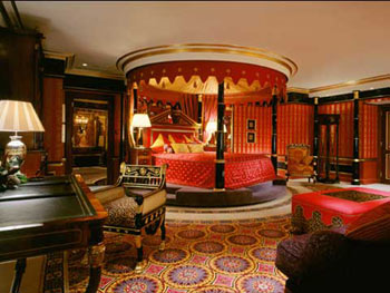 太阳总统套房位于酒店最高的两层。这里有书房,会议室,饱览阿拉伯湾迷人风光的全景天窗,可容纳12人的豪华小餐厅,厨具一应俱全,主客两间卧室各设会客区和浴室,超大私人阳台上既可以享受美食,也是私人日光浴和观赏迪拜美景的绝佳场所。