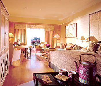 香格里拉套房及总统套房的面积分1,830平方尺(1 170平方米),位处这全港最高之酒店的高层,维港的繁华景致尽在脚下。套房内的陈设极尽豪华典雅之余亦具体贴的实用性,来自奥地利的水晶吊灯、根据人体力学而设计的行政书桌及座椅、置于客厅及睡房的大型平面电视、偌大的浴室附设玻璃淋浴间及由名师设计的影音设施、私人管家服务、快速上网服务及无线电话等,均为客人的居停更添完美。无论在客房内或亲临酒店内各世界级餐厅尝尽国际佳肴,实是美味之旅。
