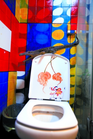 “绘画就是我的生活”,史隽说。的确,在她的家里,到处可以看到她的即兴发挥。在玄关处的白色吊橱上,史隽用丙烯画上了一些传统的彩画,抬头可见,有喜庆的民俗感;玄关左边的卫生间并不大,贴满小块白色壁砖,马桶周边则被涂成蓝、红等各种颜色,立体感很强;卧室的衣柜上则画满了飞禽走兽,衣柜门上还画了一个可爱的“蘑菇姑娘”,不仅有自然的气息,还体现了主人偶发的童心。餐桌后面的墙上,也挂满了史隽的作品。