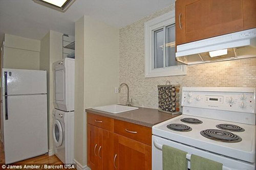 “小房子”的厨房和洗衣间。因为太小,所以冰箱和洗衣机都被放在了厨房里。