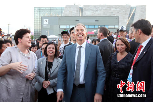 7月27日,英国前首相布莱尔现身上海世博园,并参观了世博英国馆。当日是2012年英国伦敦奥运会开幕倒计时两周年纪念日。摄影:汤彦俊