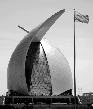 既像两片硕大的贝壳,又如乘风破浪的船帆,耸立在东海之滨的临港新城的中国航海博物馆主体结构现已建成,两座70米高的钢结构帆体展现雄姿。