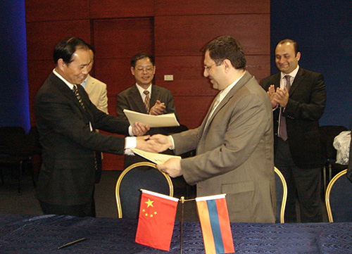 5月13日下午,上海世博局派遣的工作小组在亚美尼亚首都埃里温与亚经济部部长兼展区总代表Nerses Yeritsyan先生签署了《上海世博会参展合同》。至此,上海世博会签约的国际参展方总数已达205个。