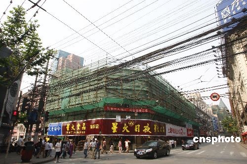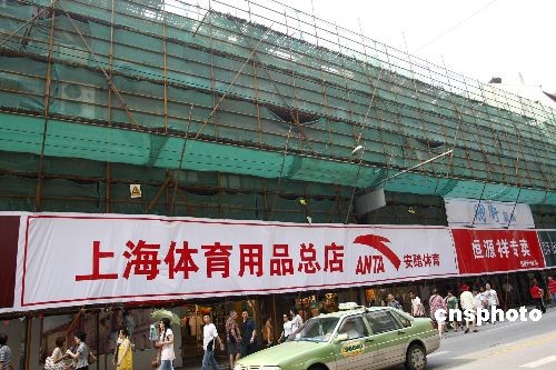 6月15日,上海南京路加紧大修,将以崭新的面貌来迎接世博会的到来。中新社发 郑雄增 摄