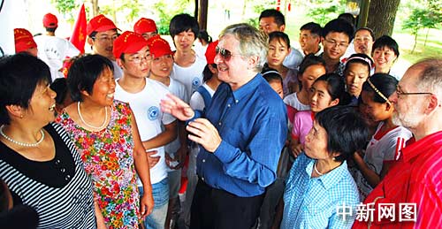 中新网宁波7月5日电(记者 徐小勇 通讯员 徐猛挺)“Better City, Better Life;Welcome to Tengtou”(城市让生活更美好;滕头欢迎你)。在浙江省奉化滕头村的外语角,来自宁波诺丁汉大学的外教们正在教村民说外语。