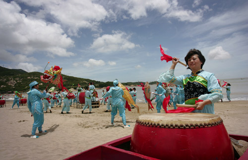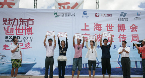 11日上午,“魅力东方迎世博--走进宁波”大型直播活动在象山松兰山海滩举行。直播活动全面报道了宁波市迎接2010年上海世博会的情况,各类主题剪纸表演、专家访谈、小朋友百米儿童画、沙滩趣味运动会、手语表演、民俗演出等活动,让夏日的海滩活力十足。上海世博局国内参展顾问黄耀诚现场向5位幸运市民颁发了世博请柬,送出了来年之约。
