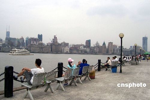 7月16日,上海中心气象台发布高温黄色预警信号,在上海浦东滨江大道观光的游客没有因此降低游兴。中新社发 周东潮 摄