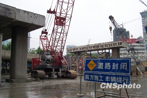 8月12日,正在拆除中的上海吴淞路闸桥。随着上海外滩综合交通改造外滩通道工程进行,建于1989年的吴淞路闸桥正在逐段拆除过程中。而塘沽路至武昌路的首段引桥已经拆除。预计到2010年3月,吴淞路闸桥全部封闭拆除。闸桥拆除后,汽车从外滩地区穿越苏州河将走外滩地下通道。中新社发 周东潮 摄