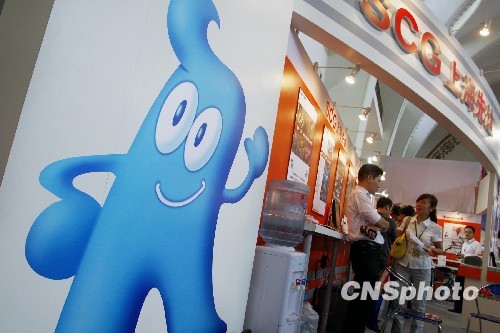 8月13日,一上海参展商用“海宝”等世博会元素来布置展厅宣传世博精神,并以自己的自动识别新技术来确保世博期间食品安全。当日,第十六届国际自动识别技术展览会(SCAN CHINA 2009)在北京开幕。SCAN CHINA2009从应用推广、技术探讨、产业发展以及国际交流等方面着手,致力于促进中国自动识别技术的应用与发展。中新社发 郑雄增 摄