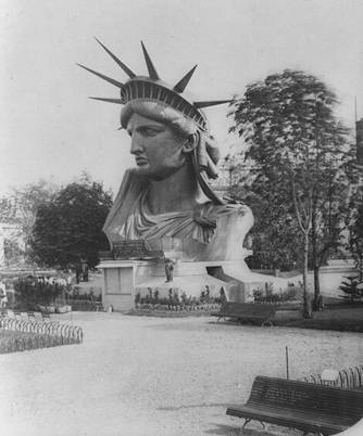 伫立在纽约港口的“自由女神”是法国人民为祝贺美国独立100周年而赠送的大礼,由于经费等原因未如期完成,1876年费城世博会上只能展出一只高42英尺的手臂。人们可以花25美分登上火炬顶盘眺望,“自由女神”总算“部分”地赶上了参加美国百年独立纪念。1878年巴黎世博会上,刚刚完成的“自由女神”头部在特洛卡蒂诺宫展出,游人纷纷爬进她高大的华冠,从25个窗户中纵览展区。“自由女神”在两次世博会上分段现身,引起世界更多关注和期待。1883年,自由女神在巴黎进行了“试安装”。1886年10月28日,克利夫兰总统亲自主持揭幕仪式,迎接“自由女神”在纽约港安家落户。外壳用6万磅铜制成,内有25万磅钢材做支撑。设计者巴托尔迪一夜间成了驰名全球的建筑师。许多同行且羡且嫉,说巴托尔迪的专业水准和获得的荣誉并不相称,但又都承认他对机遇的把握。早在苏伊士运河竣工前巴托尔迪便产生过宏伟构想,在入口处树立一座高耸的灯塔,造型为古罗马“自由女神”。他曾于1867年和1869年两度游说埃及国王却未能成功,但巴托尔迪终于没有错过美国独立100周年的历史契机。著名工程师埃菲尔为自由女神进行了内部结构设计。自由女神是第一个使用电弧光的灯塔。经过漫长海上漂泊的移民们来到“新大陆”总会第一眼看到这尊仪态万方的铜像,“自由女神”成了美国的标记和象征。