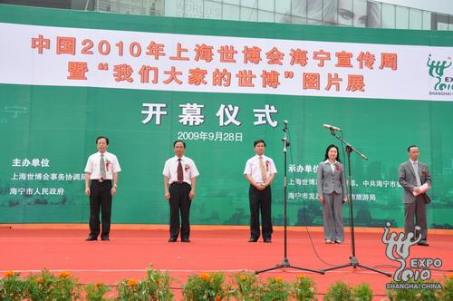 中新网9月29日电 据上海世博会官方网站消息,28日上午,中国2010年上海世博会海宁宣传周暨“我们大家的世博”图片展,在浙江海宁拉开帷幕。