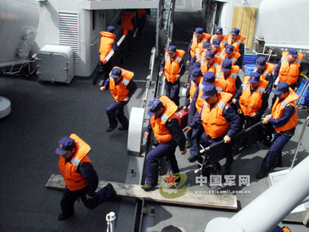 随着上海世博会日益临近,东海舰队某部针对世博会会期长、水上安全形势复杂等实际,通过讨论交流、海上实练等方式,修改完善了3套21个安保方案预案,积极开展巡逻警戒、海上搜救、临检拿捕、反水雷封锁等世博安保科目训练。