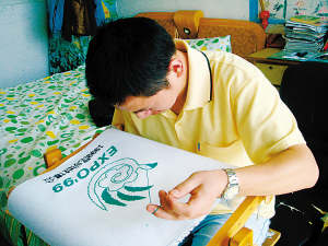 日前,叶晨星向记者展示了尚未完工的作品。憨厚的他笑着说道,要把绣成后的十字绣作品《历届世博会会徽》和写有志愿者签名的条幅,通过当地镇政府转赠给上海世博局。(陆一波 陈家寿)